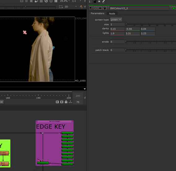 For Core Key, set up a Key light, getting rid of the green screen. Then, using an Erode node on the alpha chanel to get rid of any holes that might be in the middle of the actor. Then using a blur node to make the edges of the silhouette blended. Then merge the keylight with what you have created with the Erode and Blur nodes.